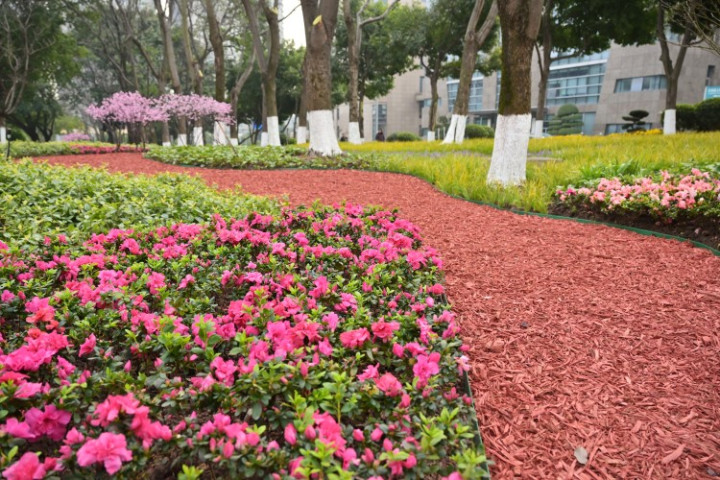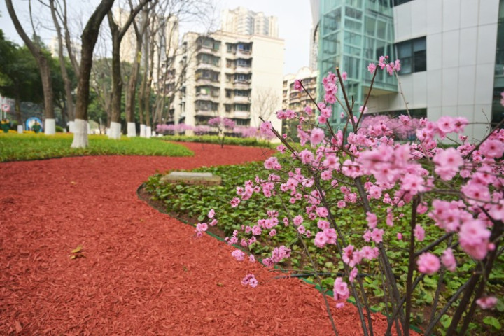 江北区园林绿化管理所相关负责人介绍,在此次提档升级作业中,绿化管理所根据现有分布情况,因地制宜地对林下空间进行了改造升级。在不适于植物生长的区域,铺设了色彩鲜艳的彩色木屑,不仅提升了场地的可进入性,还增添了趣味性和观赏性。在适于植物生长的区域,种植了金叶菖蒲、大吴风草、萱草等耐阴植物,形成了一片绿意盎然的生态空间。